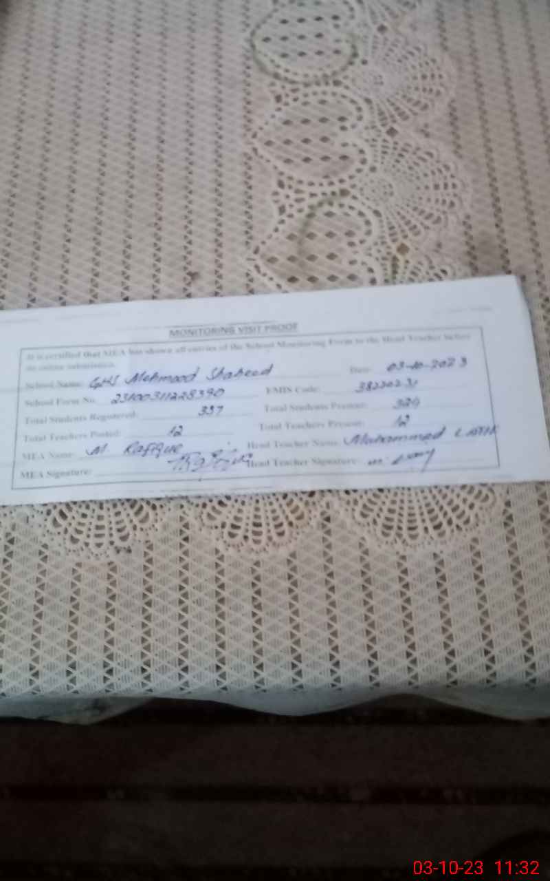 | EMIS Code: 38220231 | Name of School: GHS MAHMOOD SHAHEED | |||