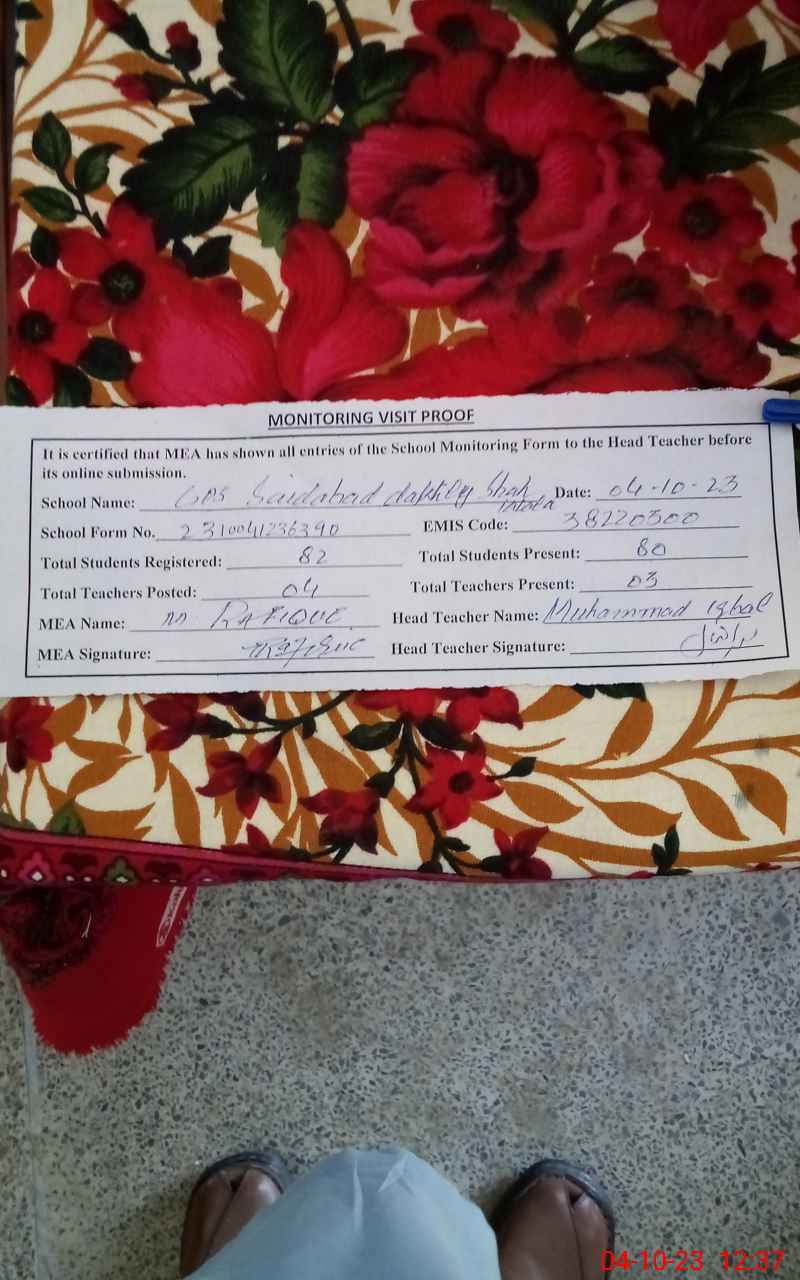 | EMIS Code: 38220300 | Name of School: GPS SAIDABAD DAKHLI SHAH WALA JANUBI | |||