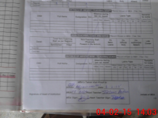 | Attendance Register | Head Teacher | MEA with School | Visit Proof |