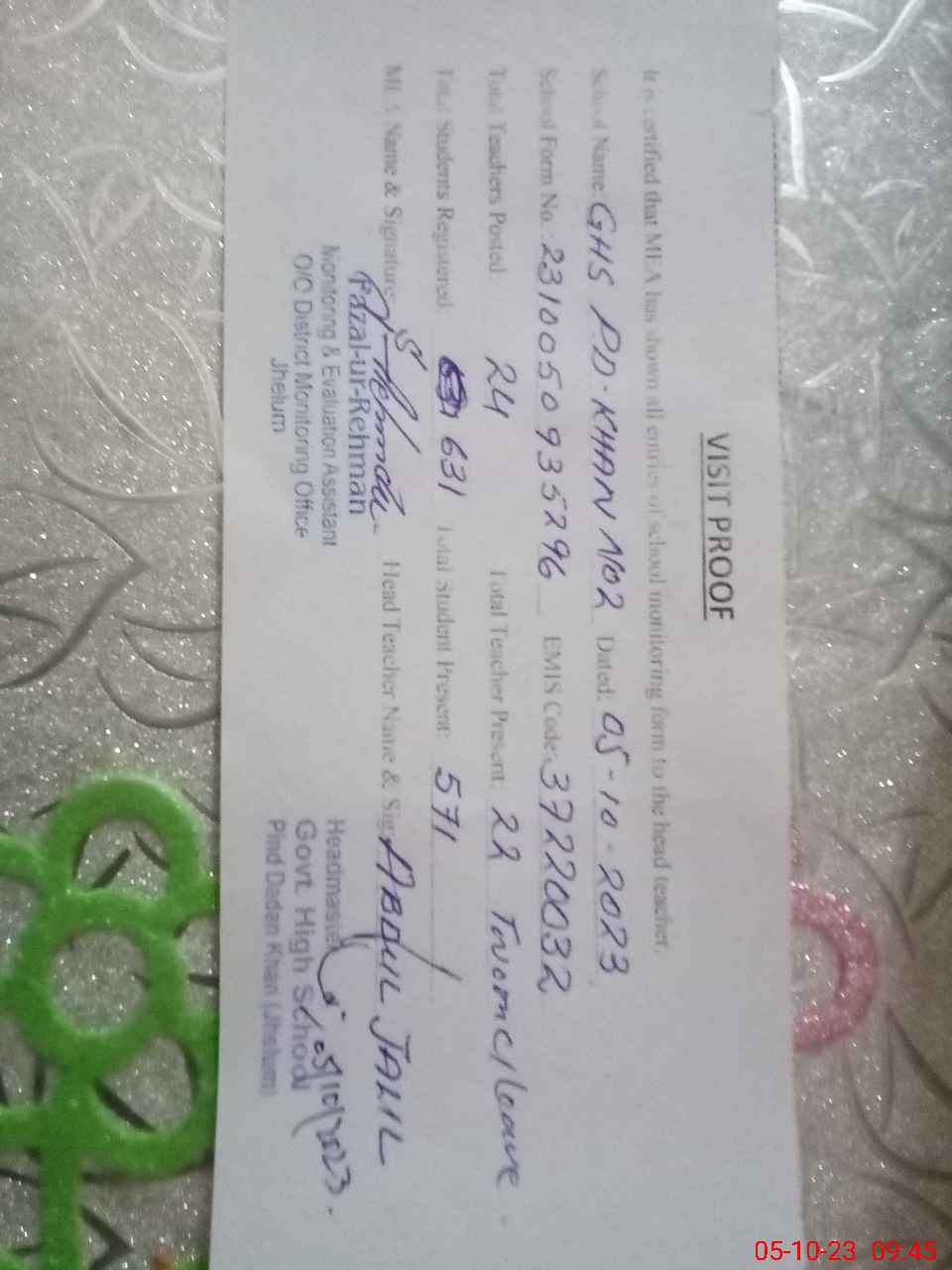 | EMIS Code: 37220032 | Name of School: GHS PIND DADAN KHAN | |||