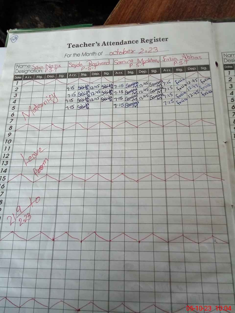 | 31**** | Sa**** Na**** | 1 | 1 | 0 | 0 | 0 | 0 | 0 | 0 | 0 | 0 | 0 | Maternity |