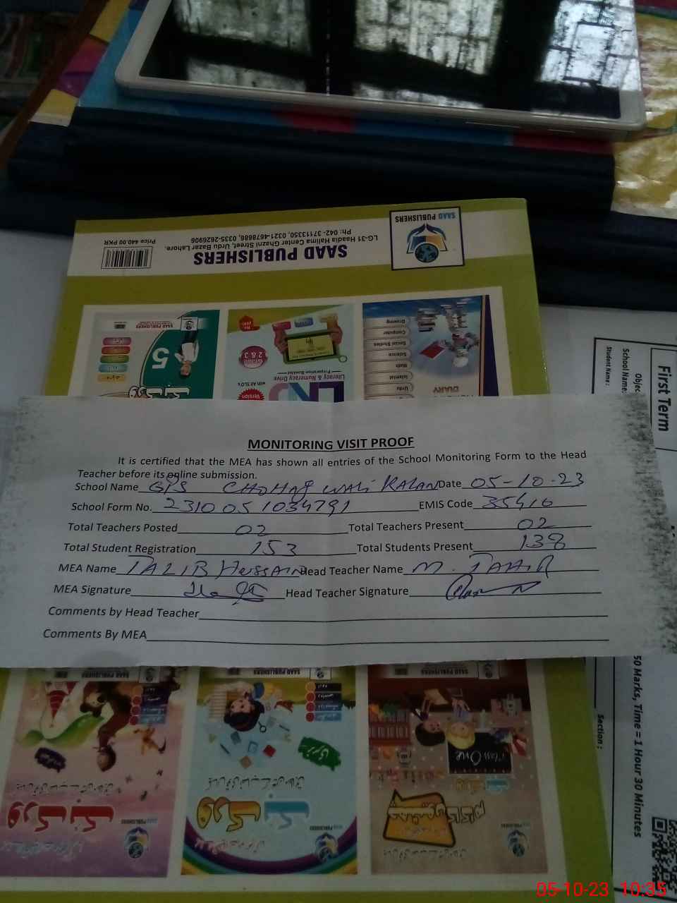 | Attendance Register | Head Teacher | MEA with School | Visit Proof |