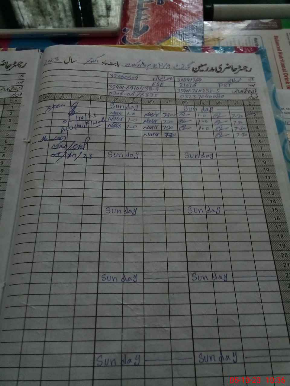 | CNIC | Full Name | Designation | R/C | Absence During Last Calender Month |
