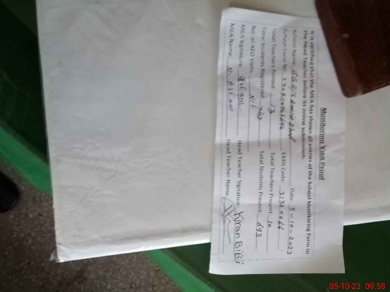 | Certified that this School was Inspected by the Undersigned MEA/DMO Today and the Information Stated Above is as Per Record. | |||||