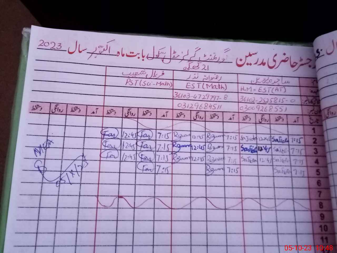 | Name: Sa**** Pe**** Designation: (School Headmaster's/Headmistress's) Est (Arabic ) Phone/Cell Number: 03**** |