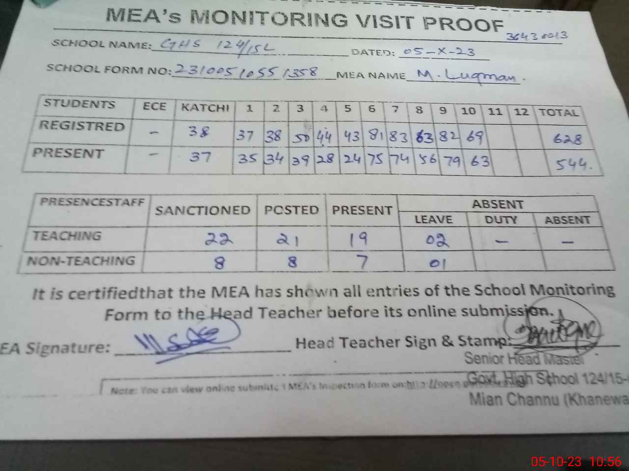 | EMIS Code: 36430013 | Name of School: GHS 124/15-L, MIAN CHANNU | |||