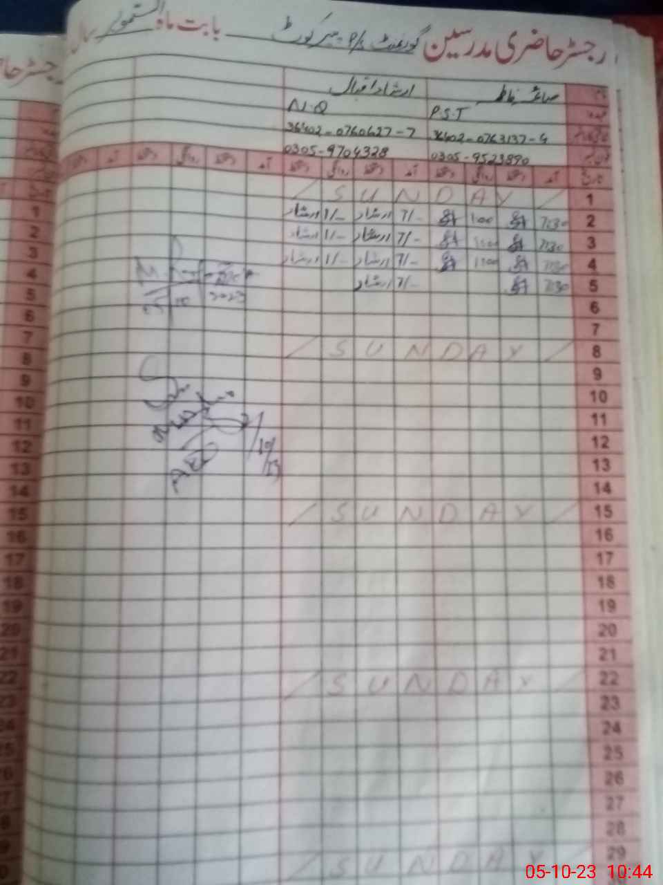 | Name: Mu**** Ze**** Designation: (School Headmaster's/Headmistress's) PST Phone/Cell Number: 03**** |