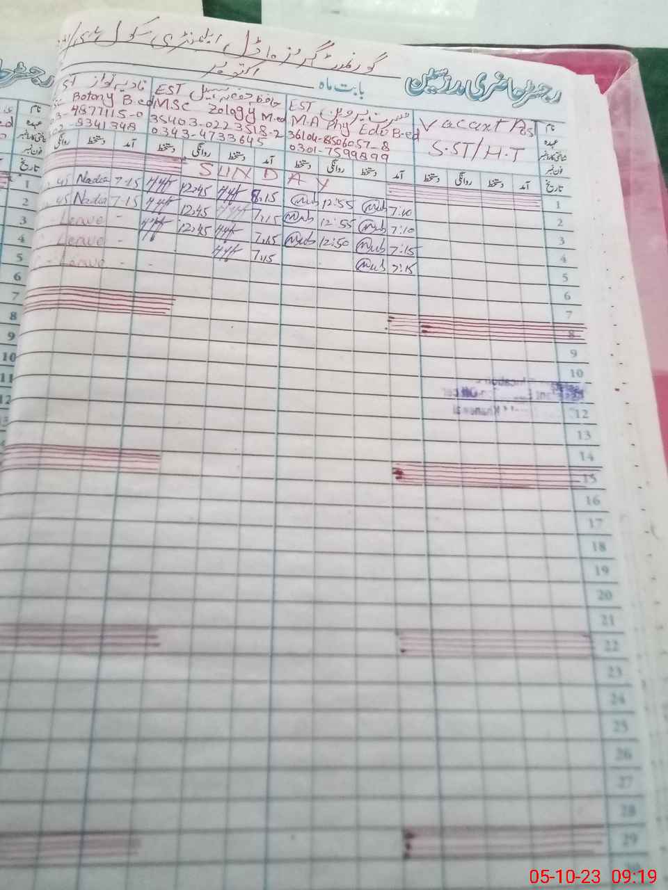 | Name: Na**** Ja**** Designation: (School Headmaster's/Headmistress's) SST(SCIENCE) Phone/Cell Number: 03**** |