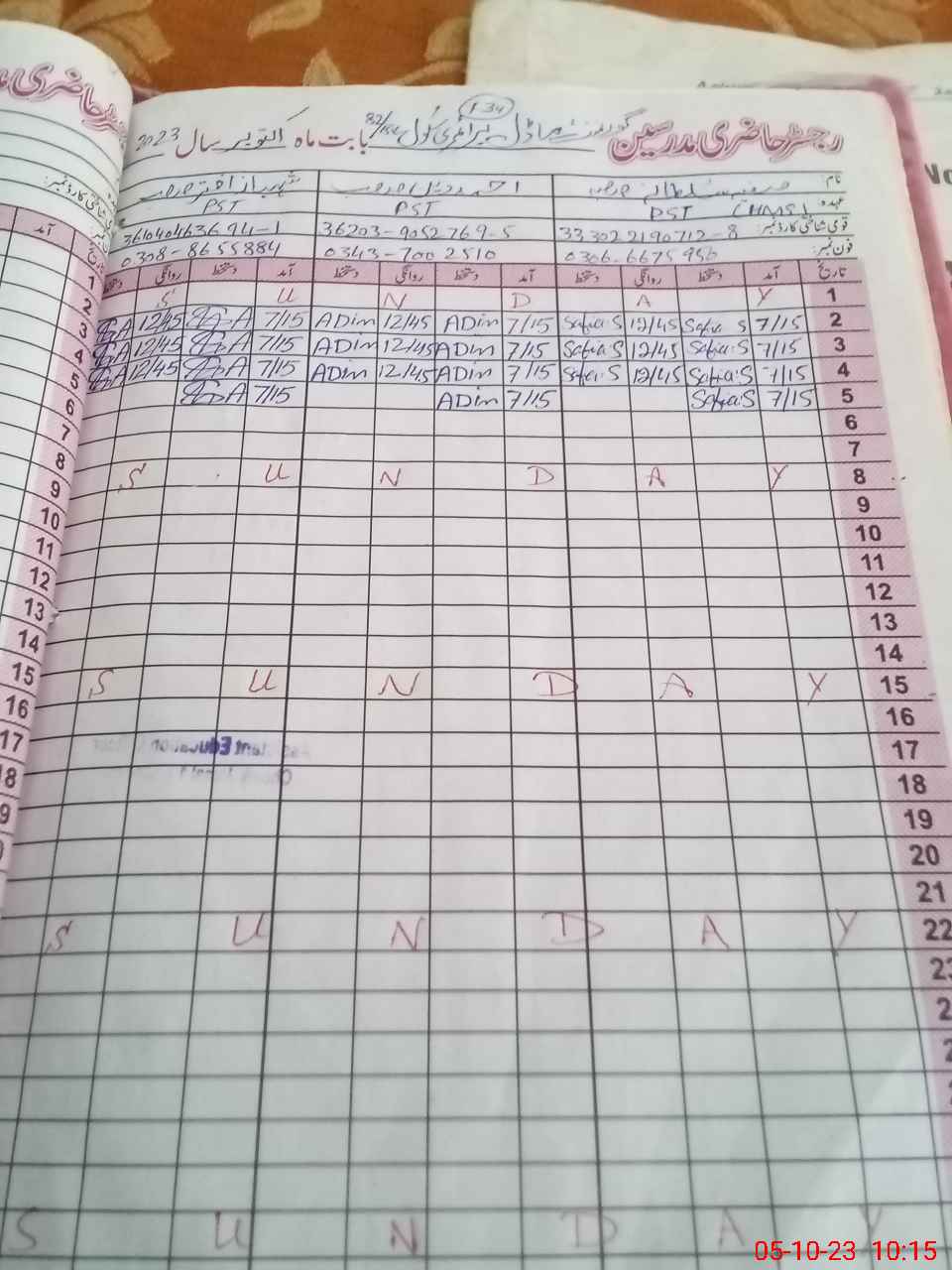 | Name: Sa**** Su**** Designation: (School Headmaster's/Headmistress's) PST Phone/Cell Number: 03**** |