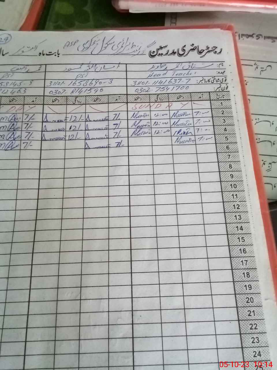 | Name: Mu**** Ah**** Ja**** Designation: (School Headmaster's/Headmistress's) PST Phone/Cell Number: 03**** |