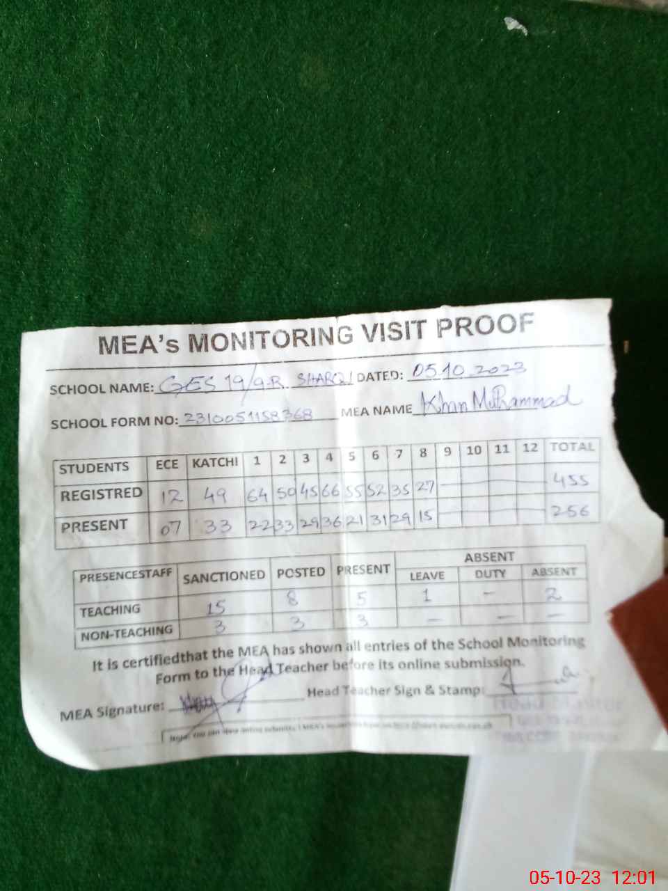 | EMIS Code: 36420253 | Name of School: GES 19/9-R SHARQI, KACHA KHUH | |||