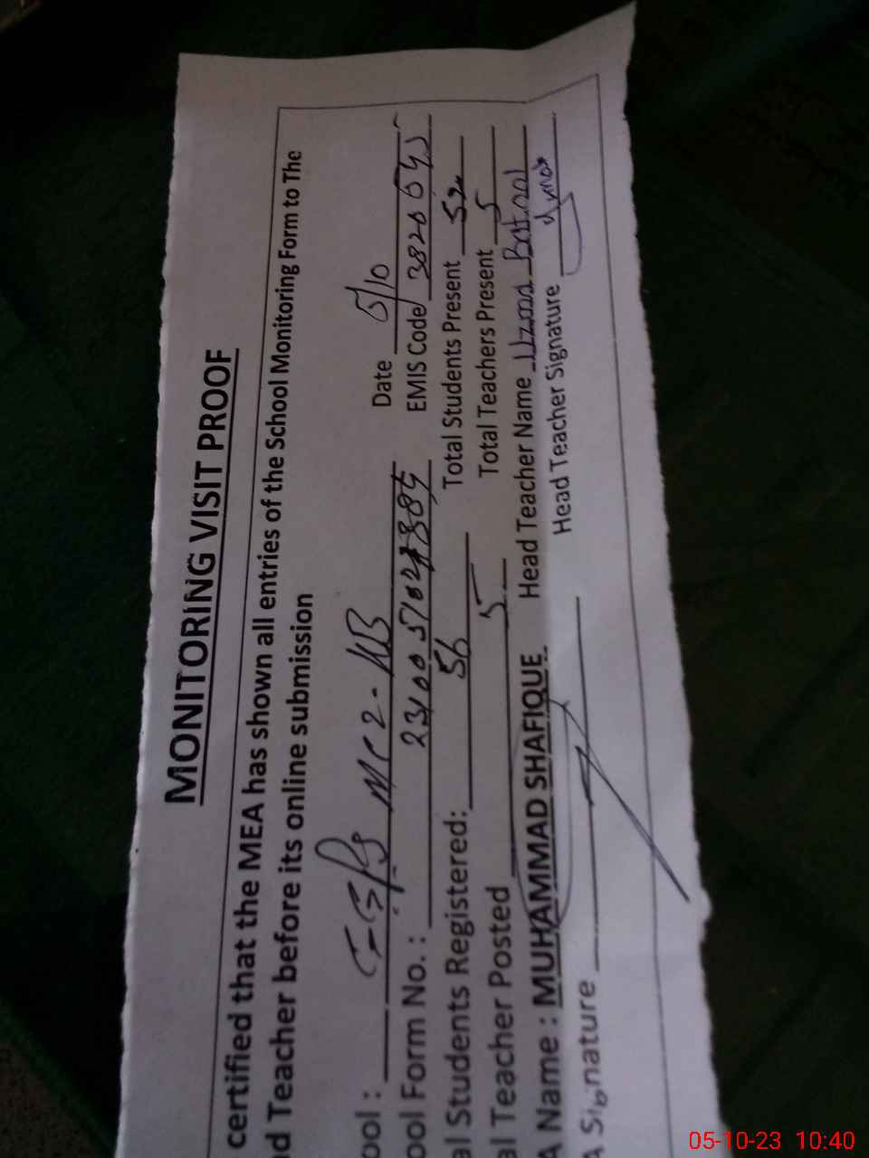| EMIS Code: 38210545 | Name of School: GGPS MC NO.2 KHUSHAB | |||