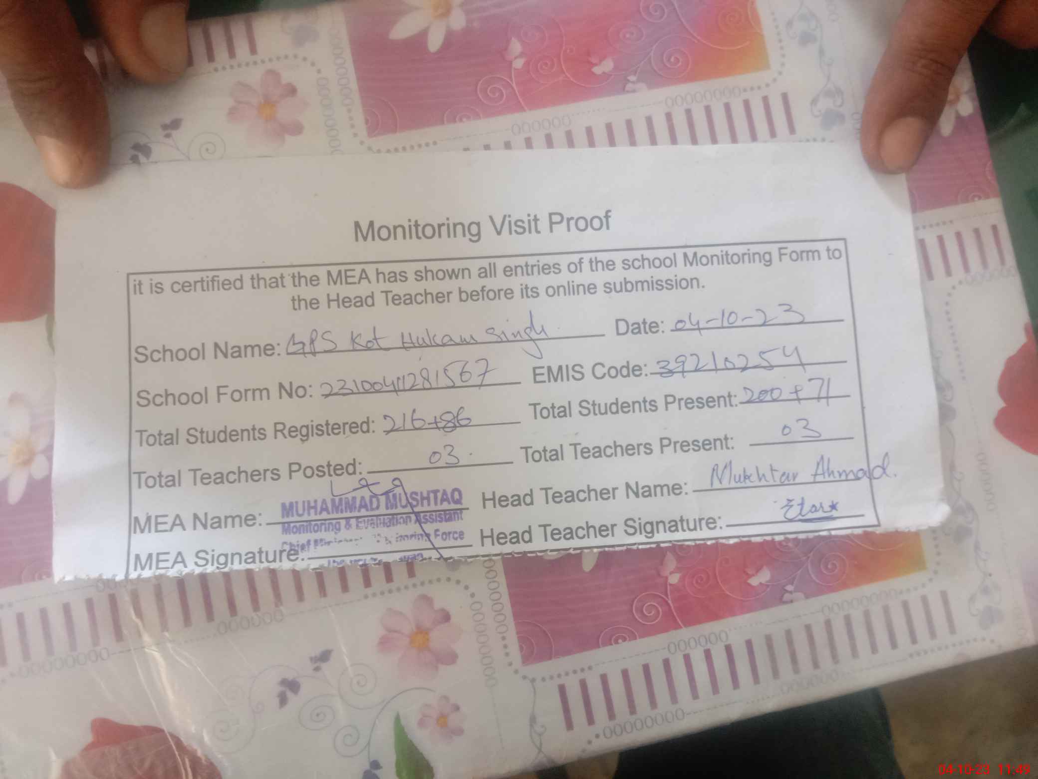 | EMIS Code: 39210254 | Name of School: GPS KOT HUKAM SINGH | |||