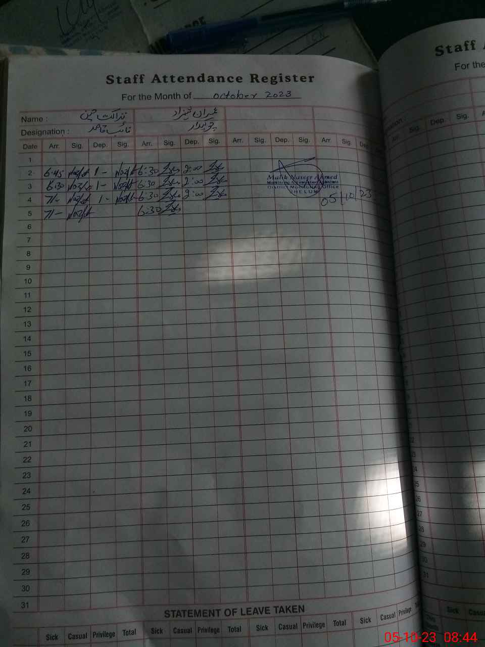 | Monitoring Date: 05-10-2023 | Start Time: 05-10-2023 08:07 AM | End Time: 05-10-2023 08:44 AM | Name of MEA: Na**** Ah**** | |