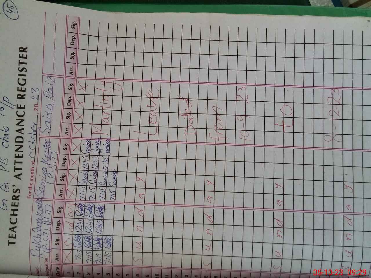 | Name: Ru**** Ko**** Designation: (School Headmaster's/Headmistress's) PST Phone/Cell Number: 03**** |