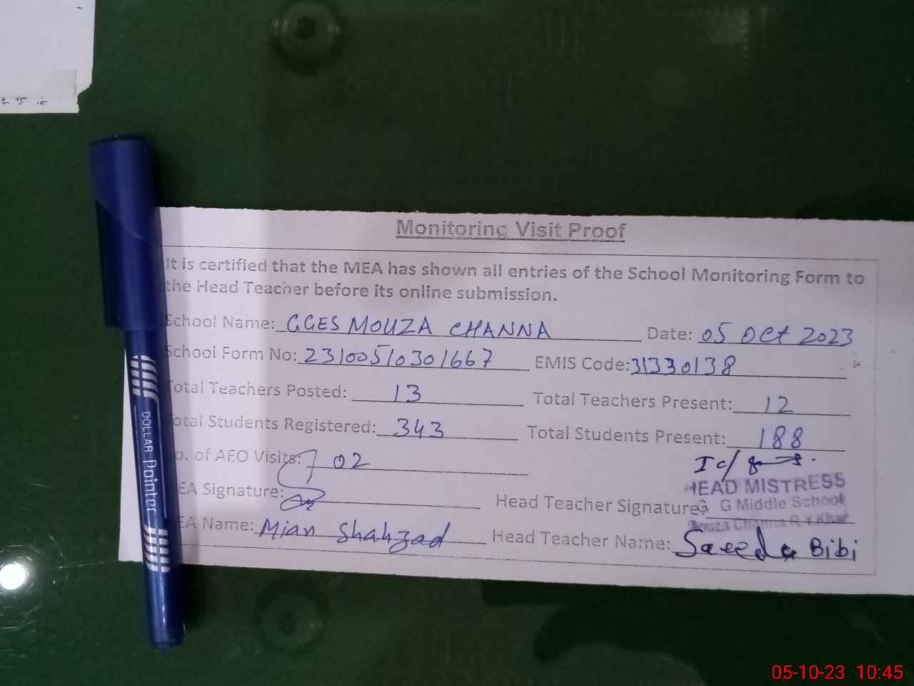 | Certified that this School was Inspected by the Undersigned MEA/DMO Today and the Information Stated Above is as Per Record. | |||||