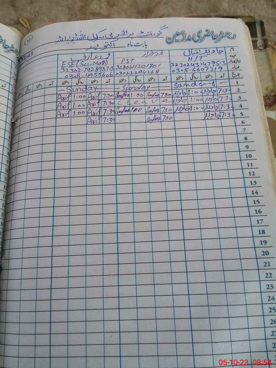 | Name: MU**** Sa**** Designation: (School Headmaster's/Headmistress's) ESE Phone/Cell Number: 03**** |