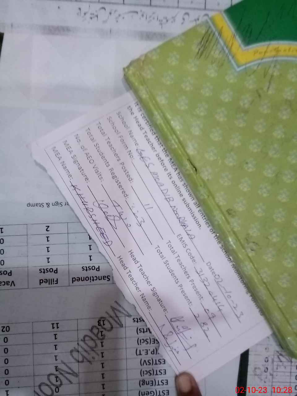 | Name: MU**** AH**** Designation: (School Headmaster's/Headmistress's) S.S.T. (GEN) Phone/Cell Number: 03**** |