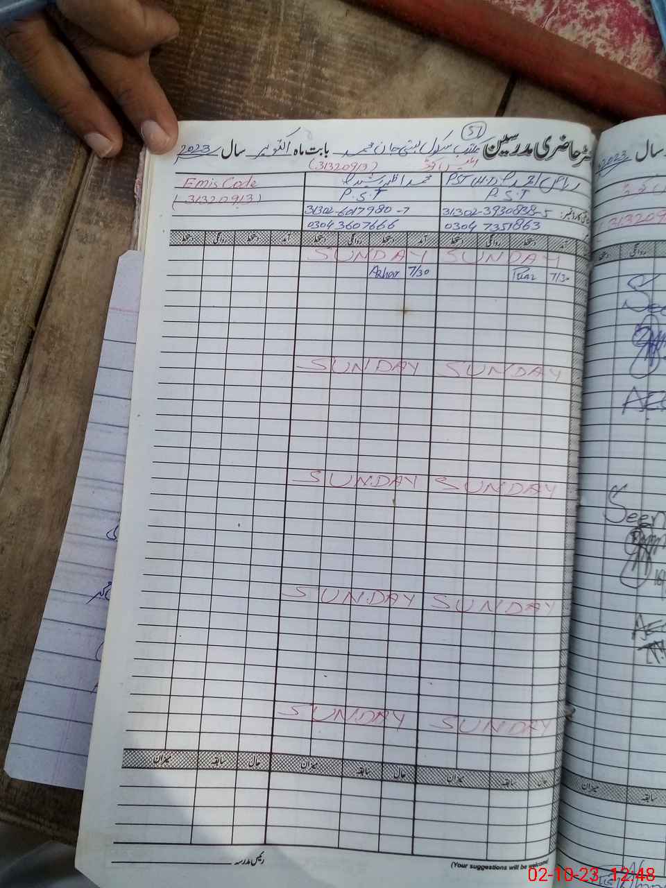 | Name: RI**** AH**** Designation: (School Headmaster's/Headmistress's) PST/PTC/JV Phone/Cell Number: 03**** |