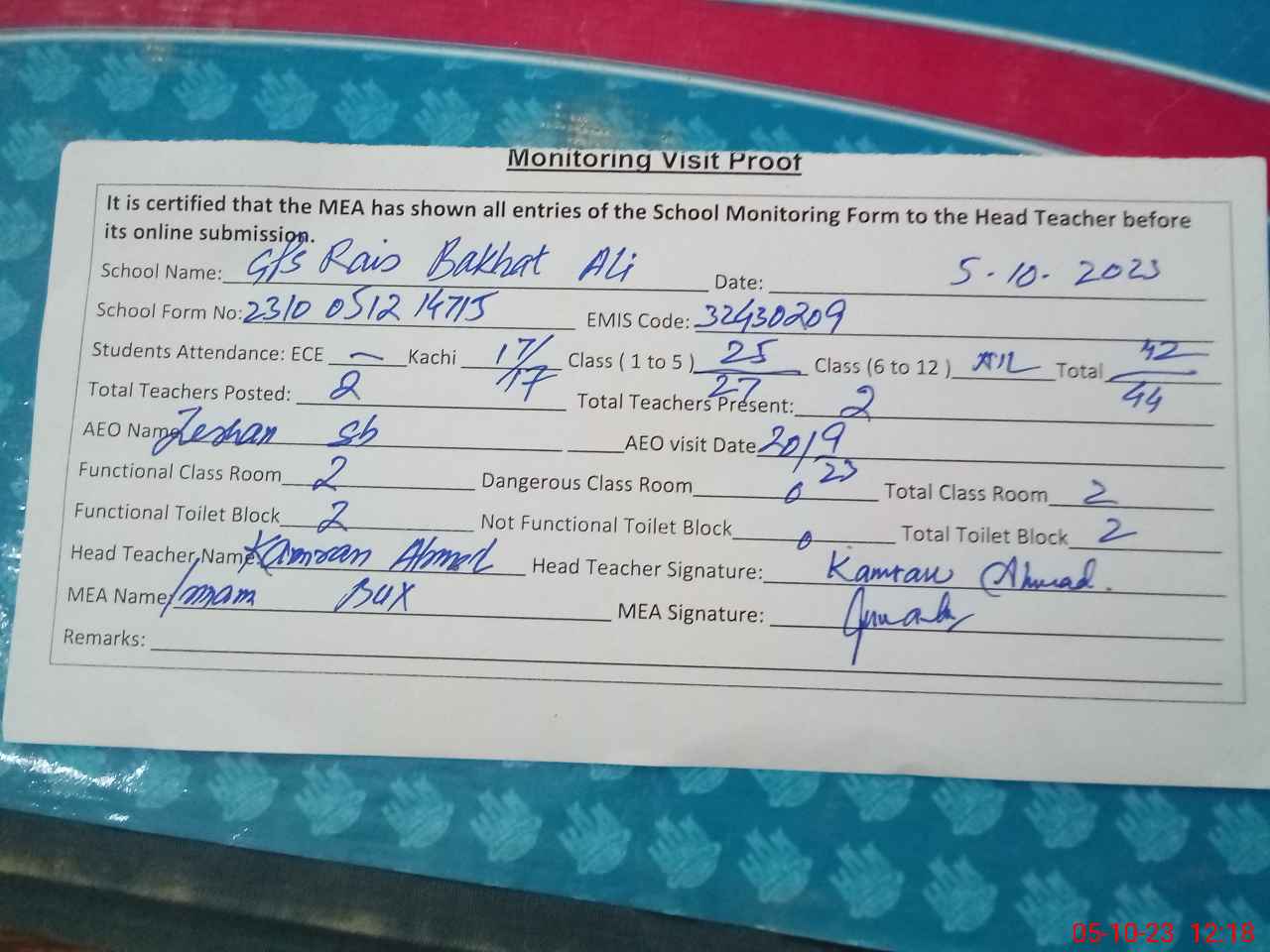 | EMIS Code: 32430209 | Name of School: GPS RAIS BAKHAT ALI | |||