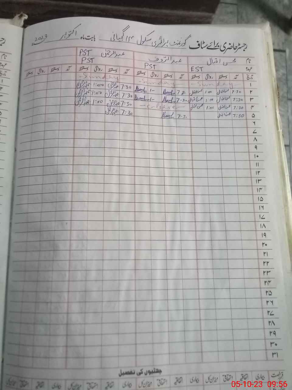 | CNIC | Full Name | Designation | R/C | Absence During Last Calender Month |
