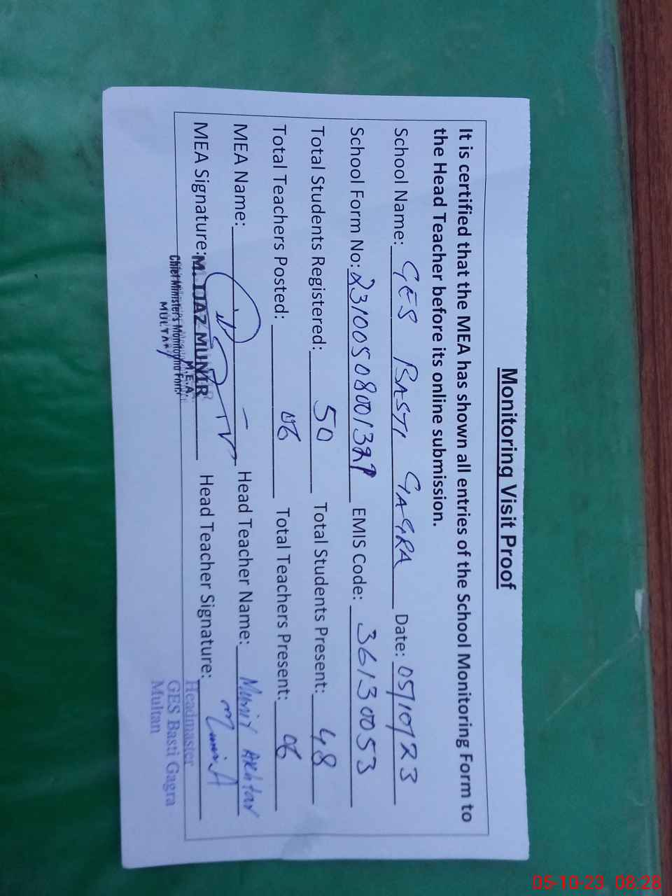 | EMIS Code: 36130053 | Name of School: GES BASTI GAGRA P/O JHOKE VAINCE | |||