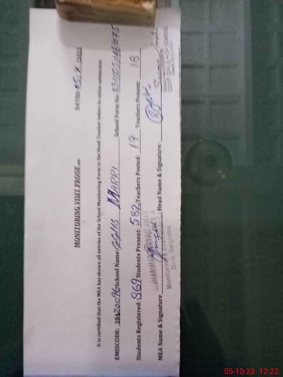 | Certified that this School was Inspected by the Undersigned MEA/DMO Today and the Information Stated Above is as Per Record. | |||||