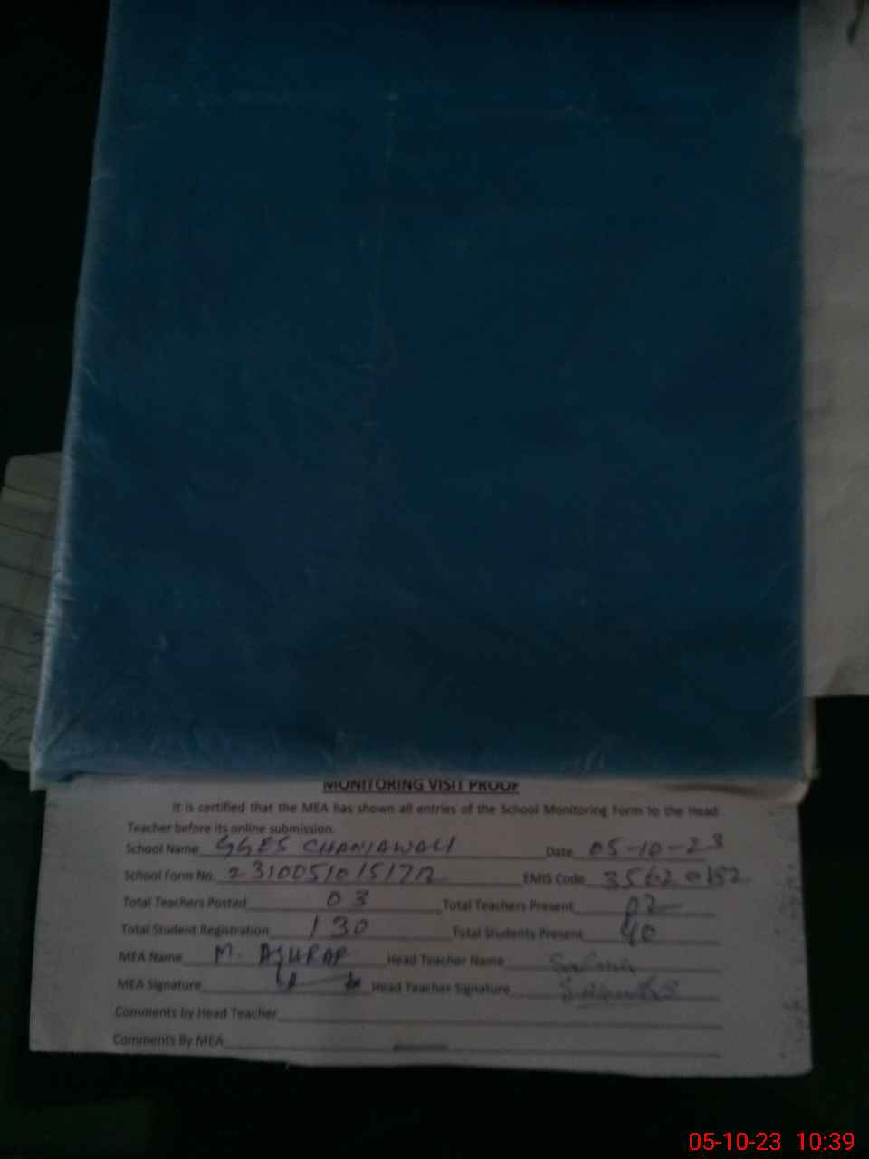 | Monitoring Date: 05-10-2023 | Start Time: 05-10-2023 09:55 AM | End Time: 05-10-2023 10:41 AM | Name of MEA: Mu**** As**** | |