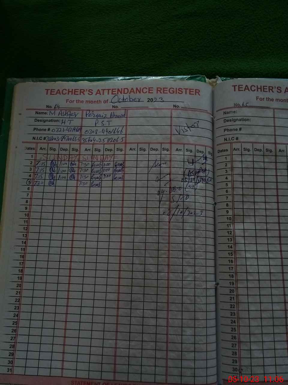 | Name: MAS**** Designation: (School Headmaster's/Headmistress's) PST Phone/Cell Number: 03**** |