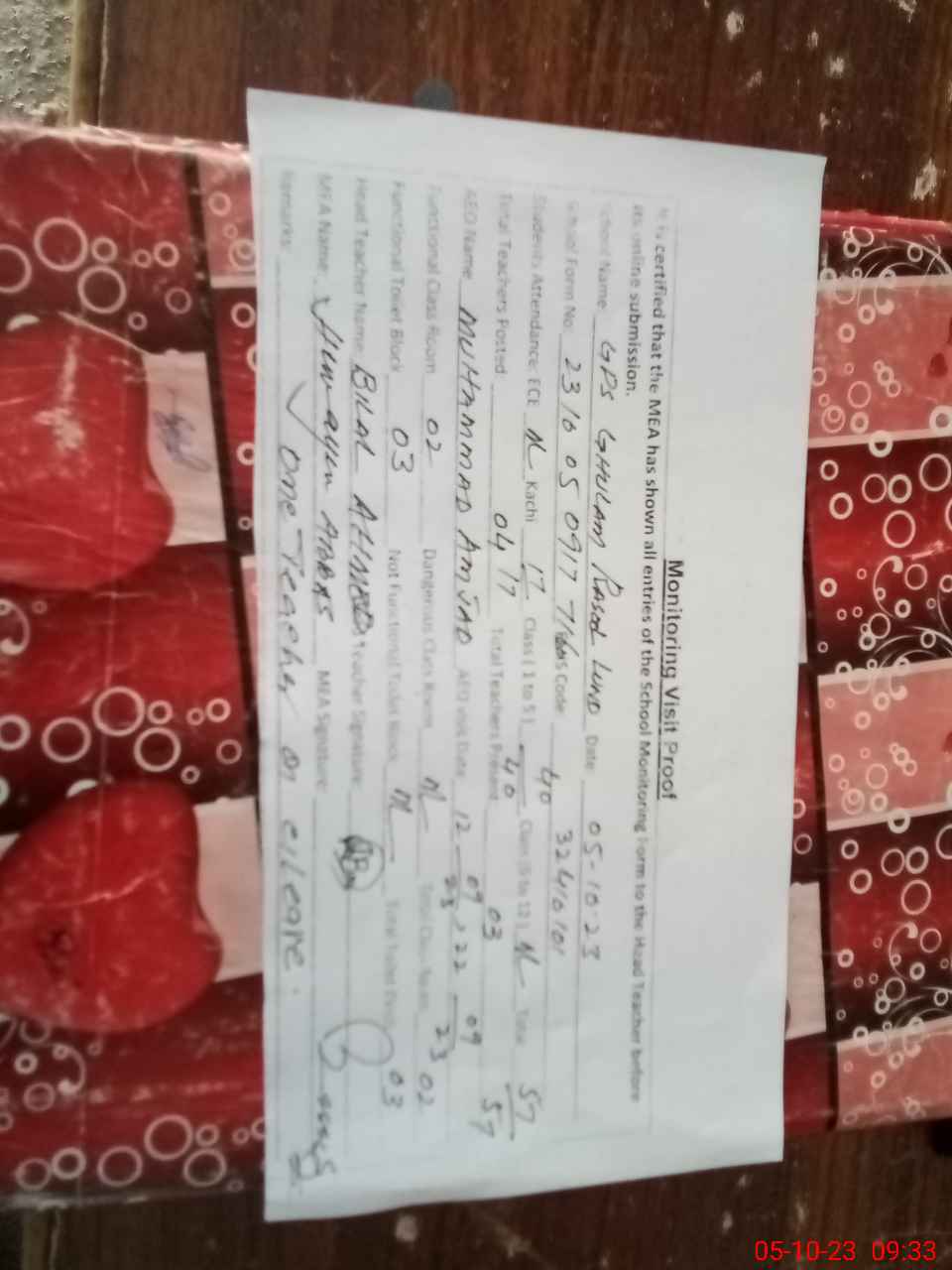 | EMIS Code: 32410101 | Name of School: GPS GHULAM RASOOL LUND | |||