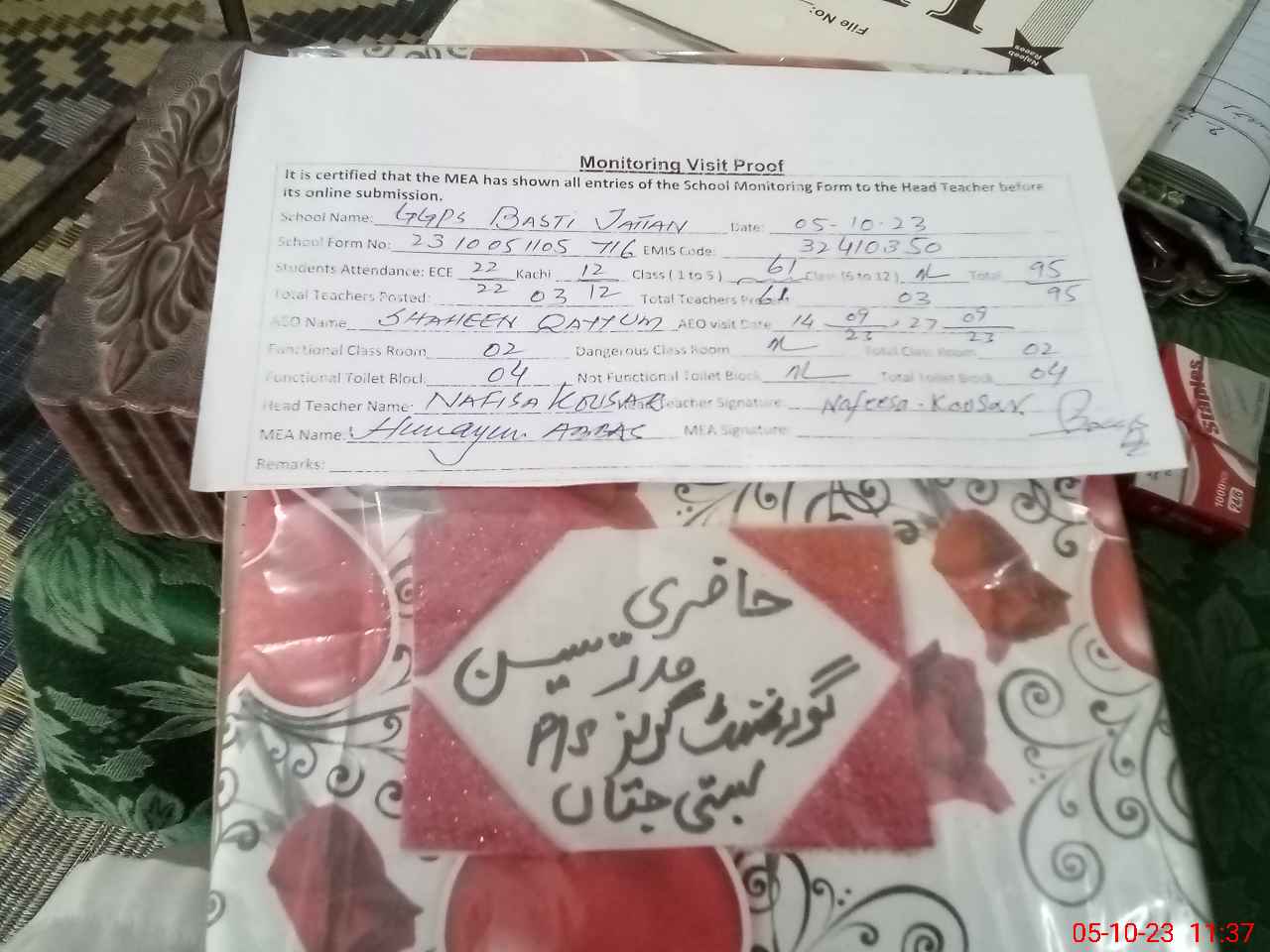 | Attendance Register | Head Teacher | MEA with School | Visit Proof |