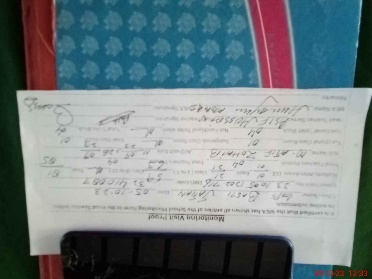 | Monitoring Date: 05-10-2023 | Start Time: 05-10-2023 11:47 AM | End Time: 05-10-2023 12:33 PM | Name of MEA: Ha**** Ab**** | |