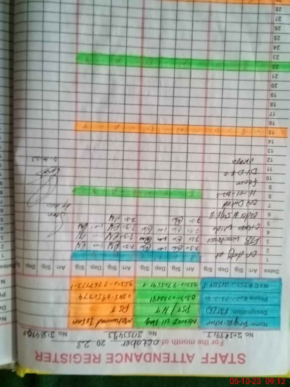 | CNIC | Full Name | Designation | R/C | Absence during last cal. month |