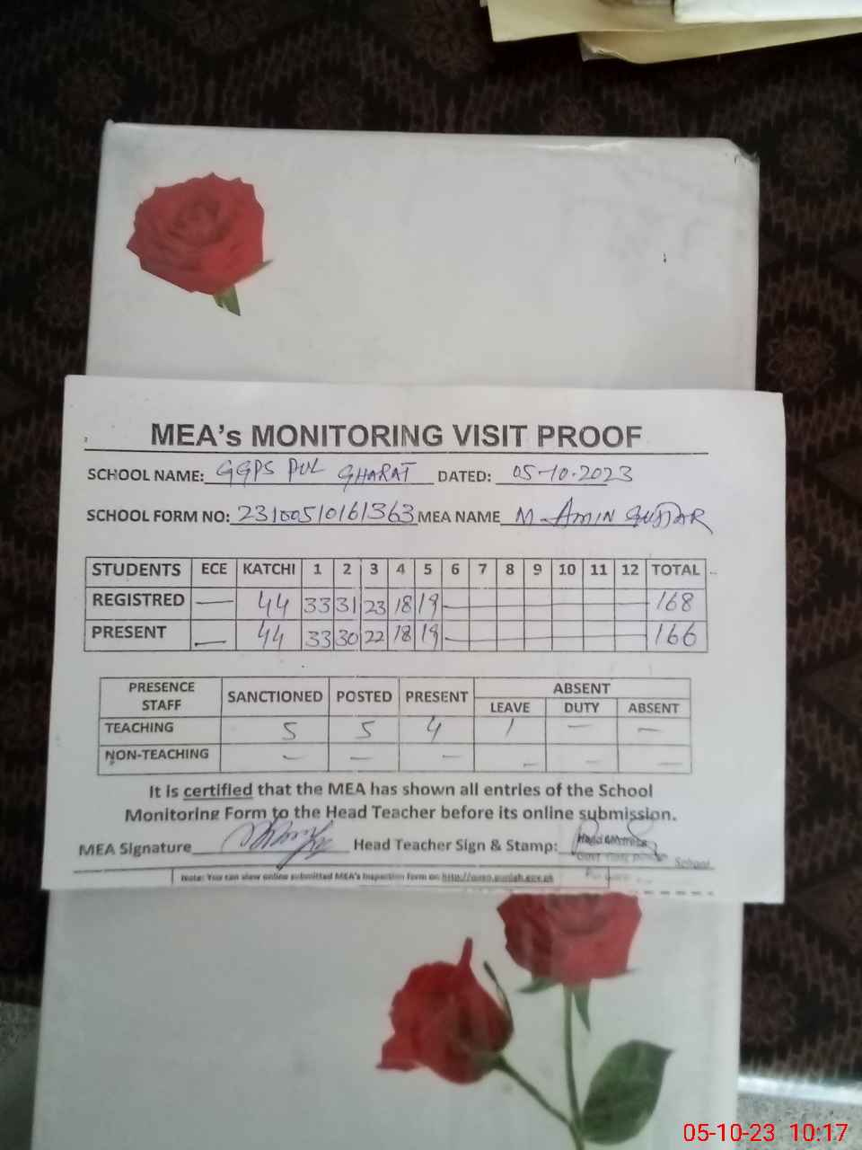 | Attendance Register | Head Teacher | MEA with School | Visit Proof |