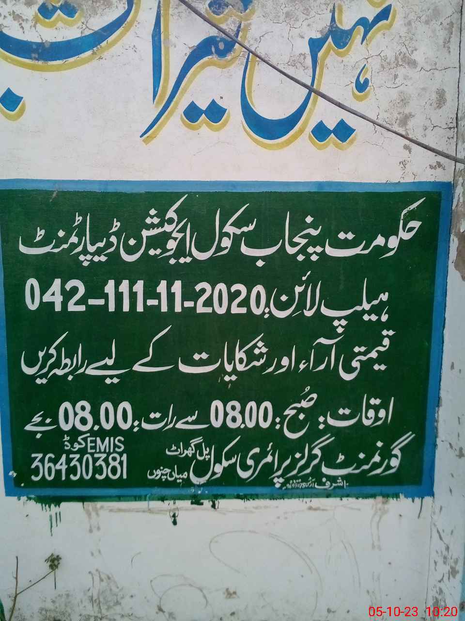 | EMIS Code: 36430381 | Name of School: GGPS PULL GHARAT, TULAMBA | |||