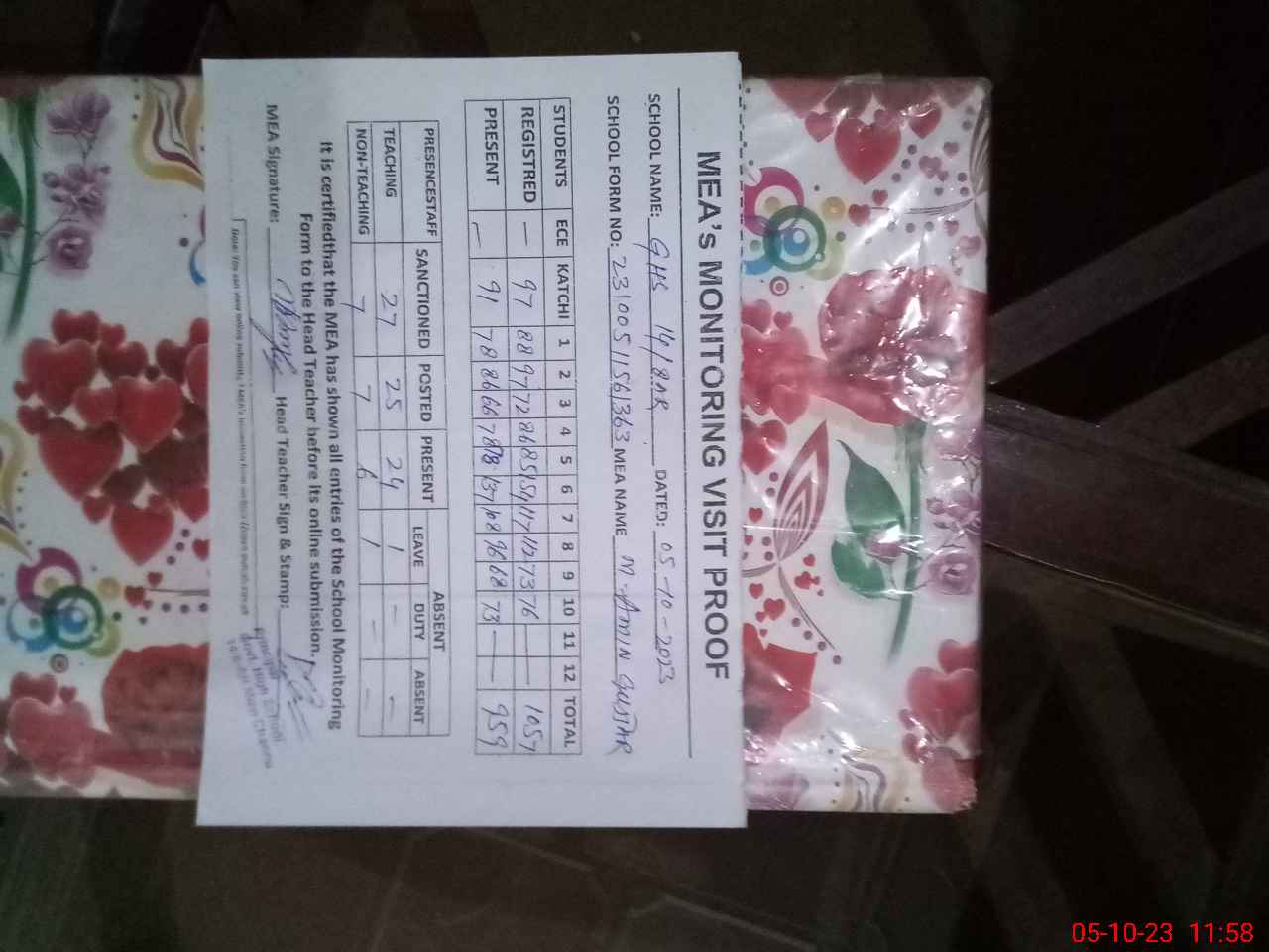 | EMIS Code: 36430029 | Name of School: GHS 14/8-AR, TULAMBA | |||