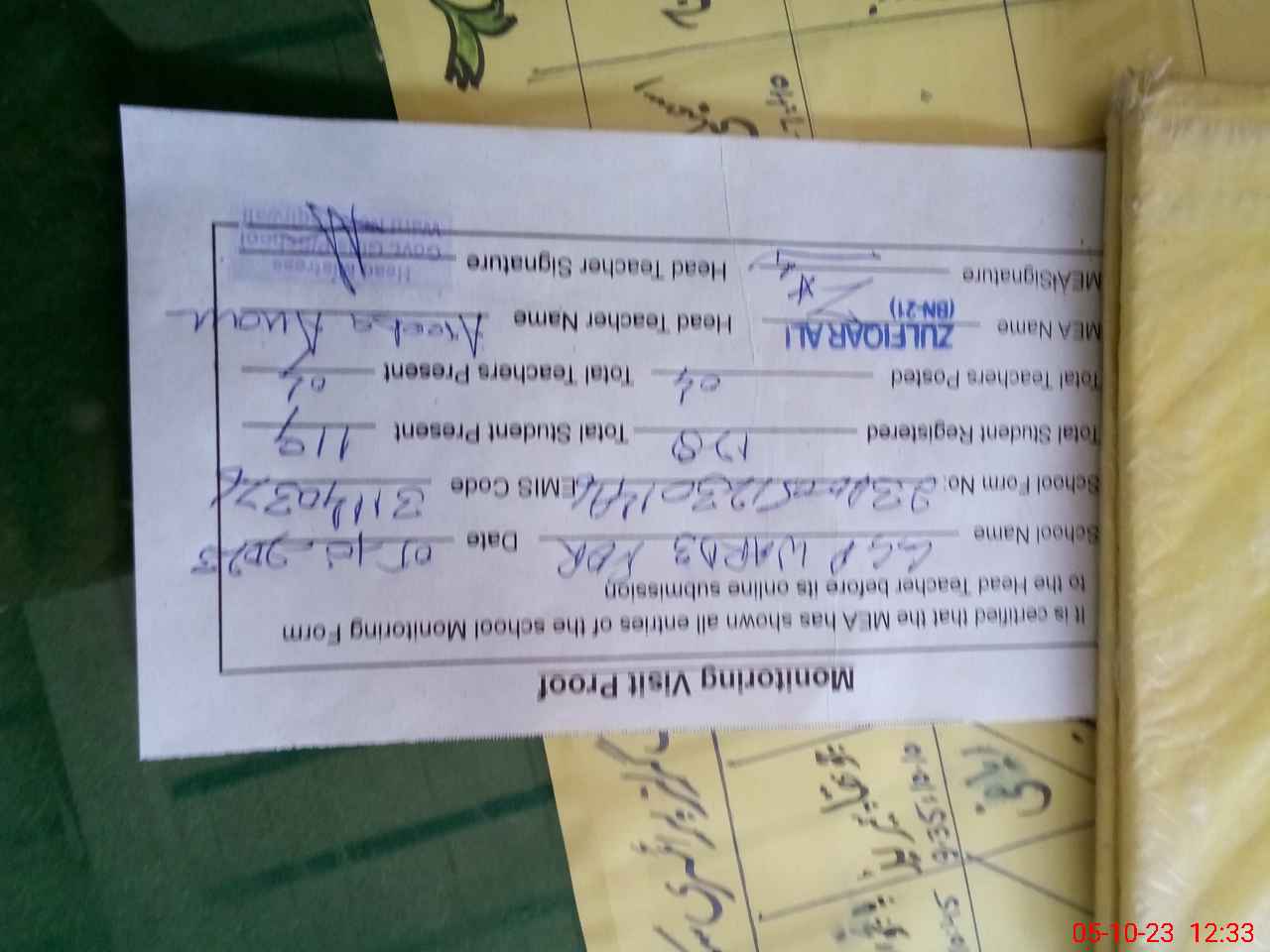 | Attendance Register | Head Teacher | MEA with School | Visit Proof |