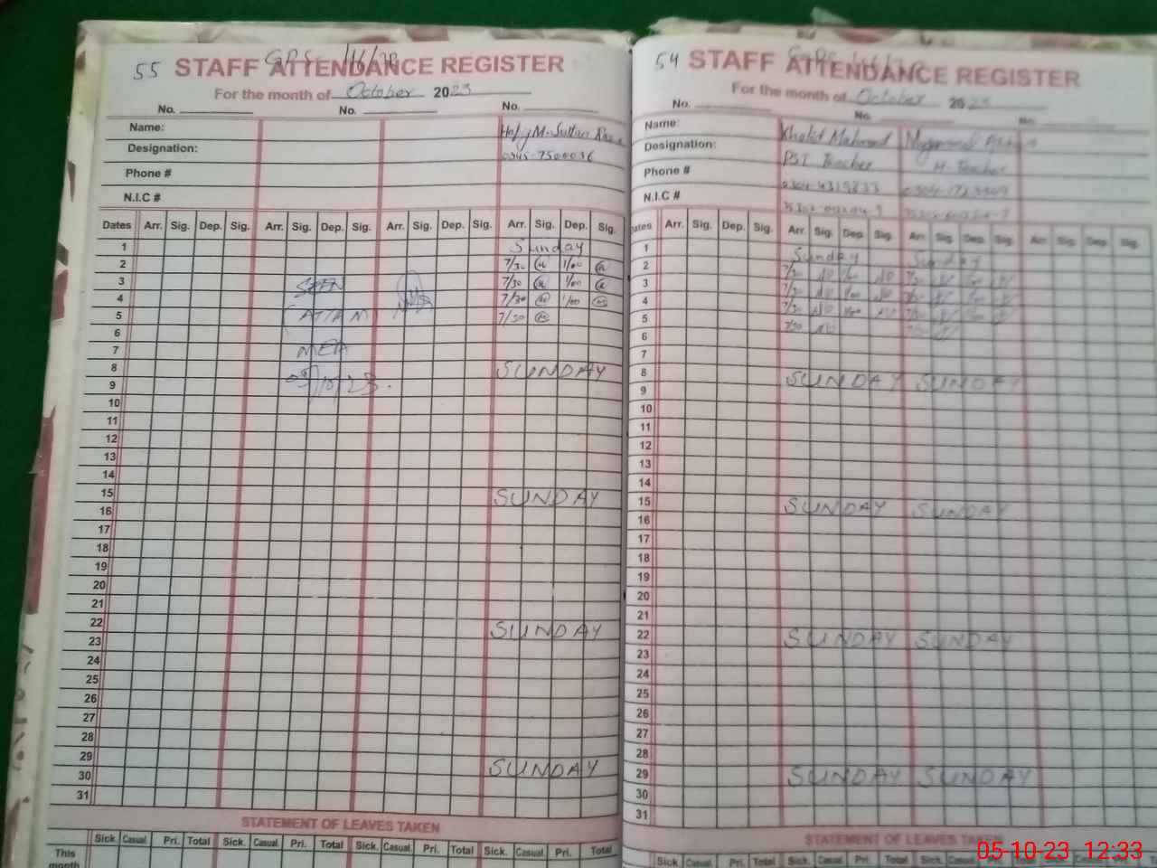| Name: Mu**** Ab**** Designation: (School Headmaster's/Headmistress's) PST Phone/Cell Number: 03**** |