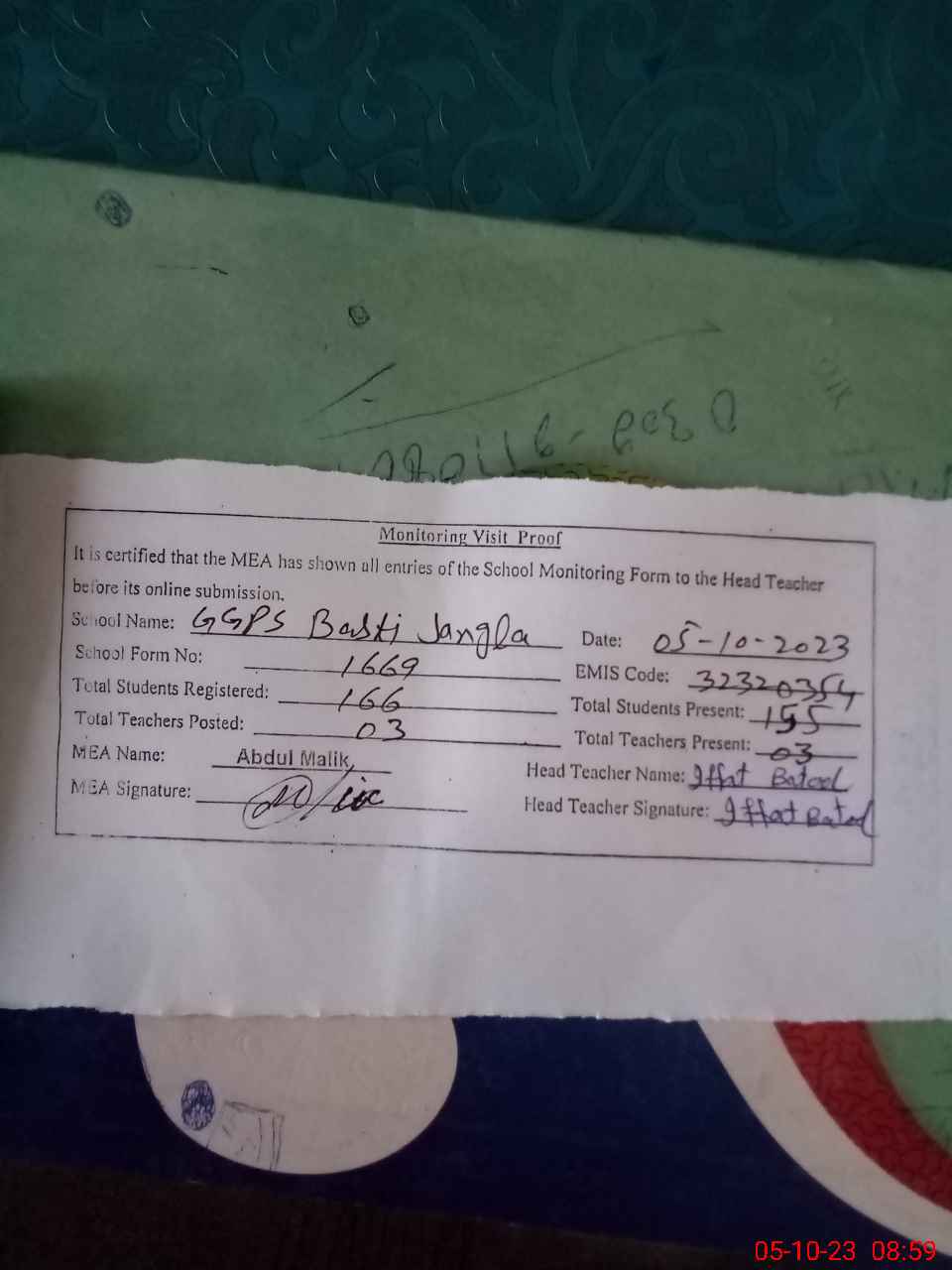 | EMIS Code: 32320354 | Name of School: GGPS BASTI JANGLA | |||