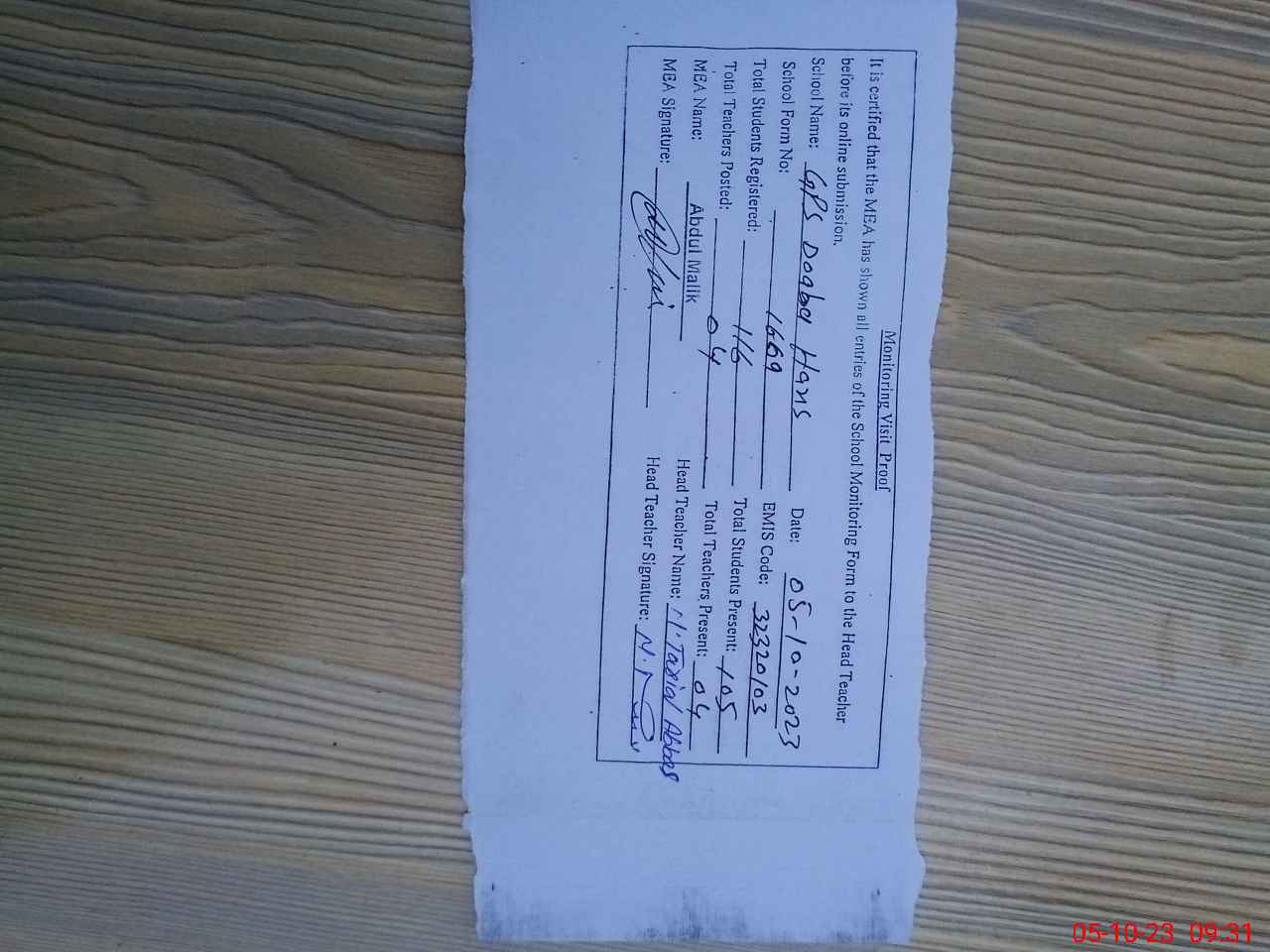 | Certified that this School was Inspected by the Undersigned MEA/DMO Today and the Information Stated Above is as Per Record. | |||||
