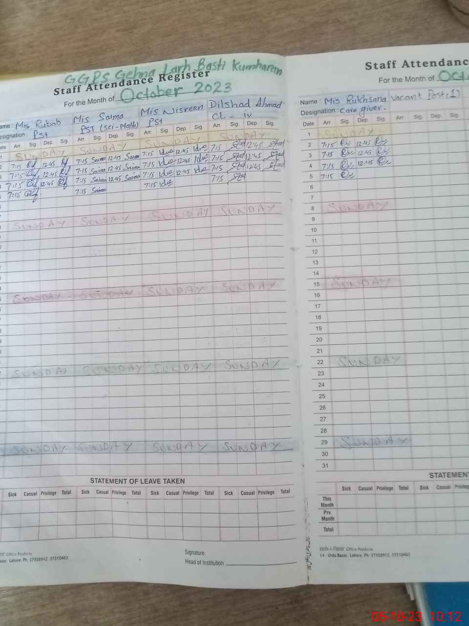 | EMIS Code: 31310447 | Name of School: GGPS GEHNA LARD BASTI KUMHARAN | |||