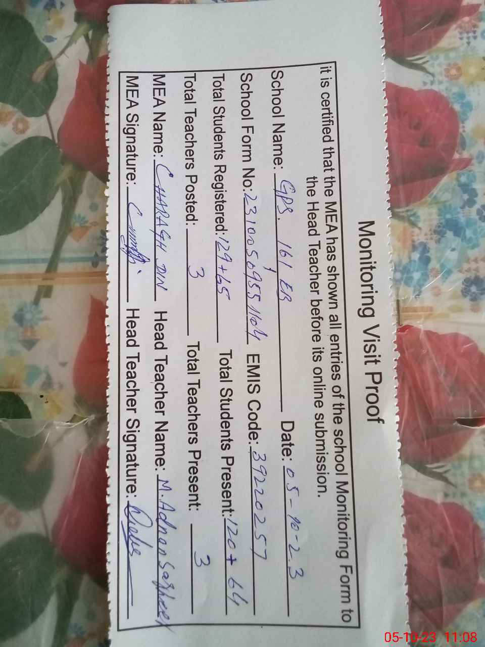| EMIS Code: 39220257 | Name of School: GPS 161 EB | |||