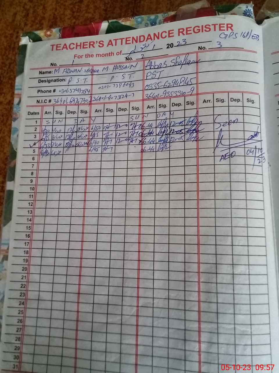 | Name: MU**** AD**** Designation: (School Headmaster's/Headmistress's) PST Phone/Cell Number: 03**** |