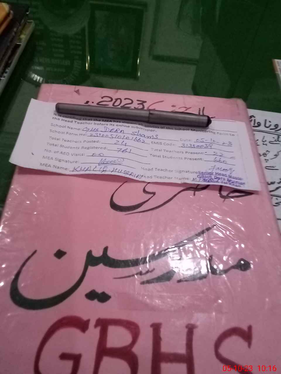 | EMIS Code: 31330039 | Name of School: GHS DERA SHAMAS | |||