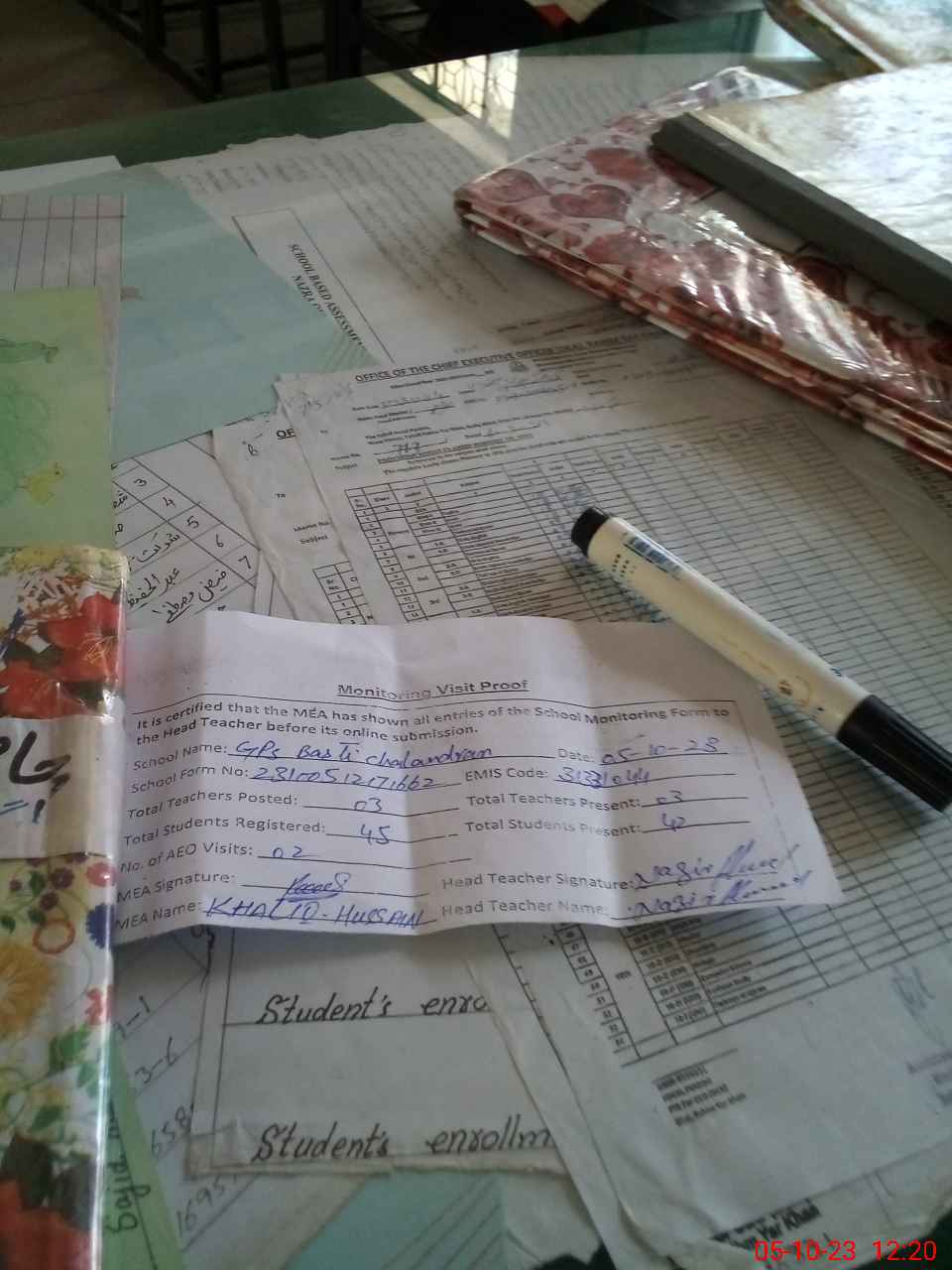 | Attendance Register | Head Teacher | MEA with School | Visit Proof |