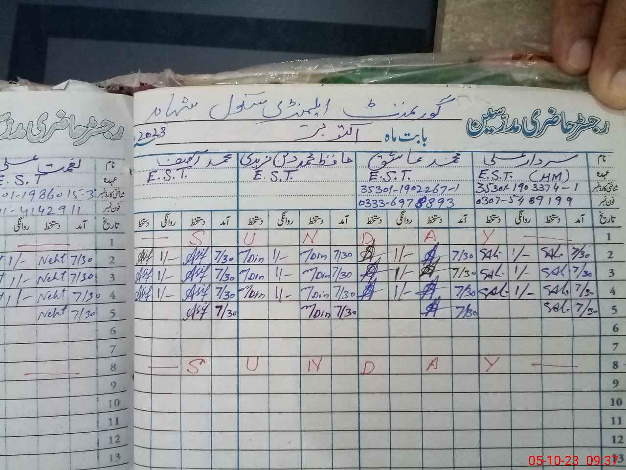 | Name: SA**** AL**** Designation: (School Headmaster's/Headmistress's) EST Phone/Cell Number: 03**** |