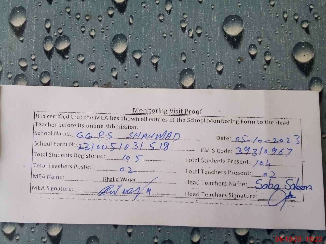 | EMIS Code: 39310967 | Name of School: GGPS SHAHMAD | |||