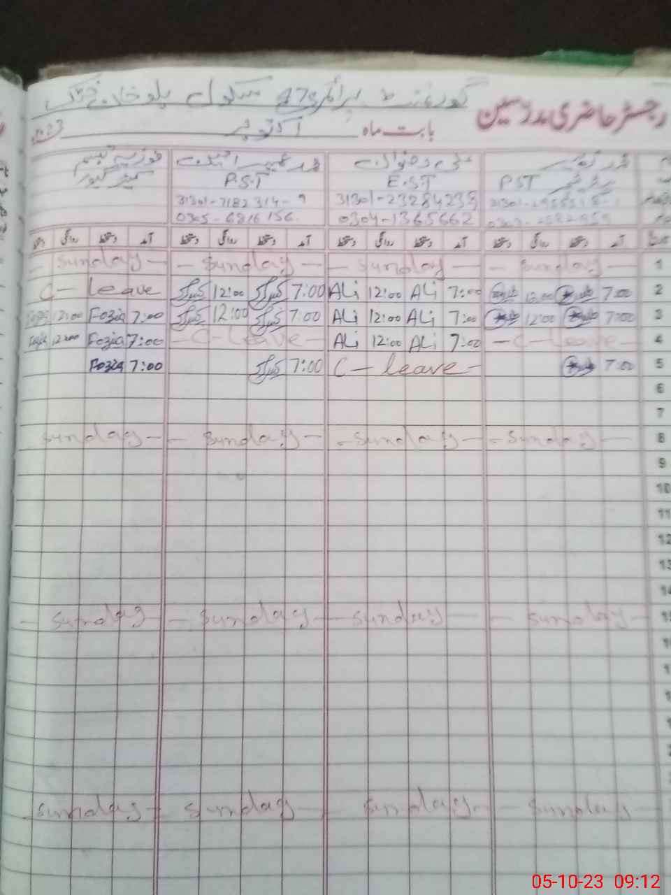 | CNIC | Full Name | Designation | R/C | Absence During Last Calender Month |