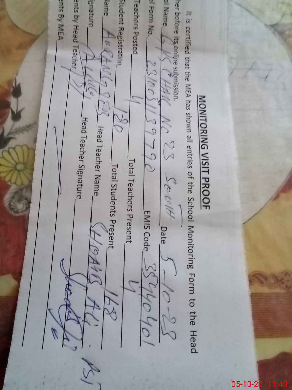 | Name: SH**** AL**** Designation: (School Headmaster's/Headmistress's) PST Phone/Cell Number: 03**** |
