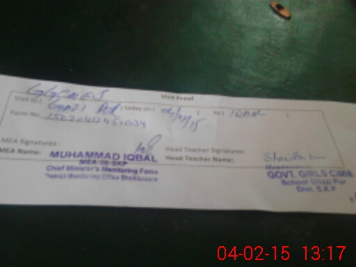 | District: SHEIKHUPURA | Tehsil: SHARAQPUR | Markaz: MUSLIMPURA-FEMALE | Level: Middle | |